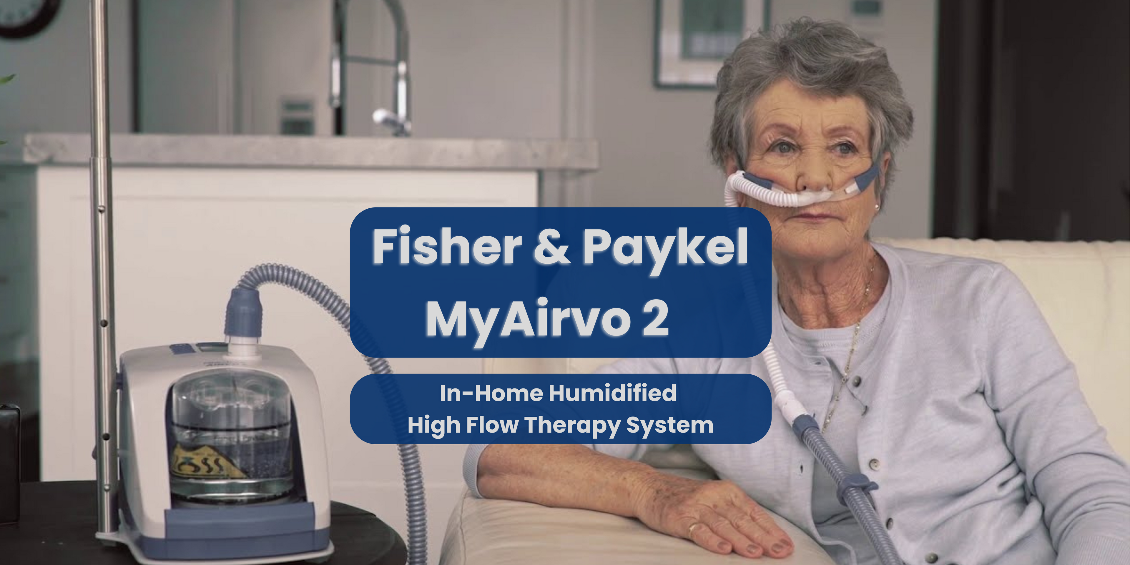 MyAirvo 2 by Fisher & Paykel Healthcare is a compact, easy-to-use high-flow nasal therapy device designed for home use. It delivers warmed, humidified air (or an air–oxygen mix) through soft nasal prongs, helping those with chronic breathing difficulties breathe more comfortably.
